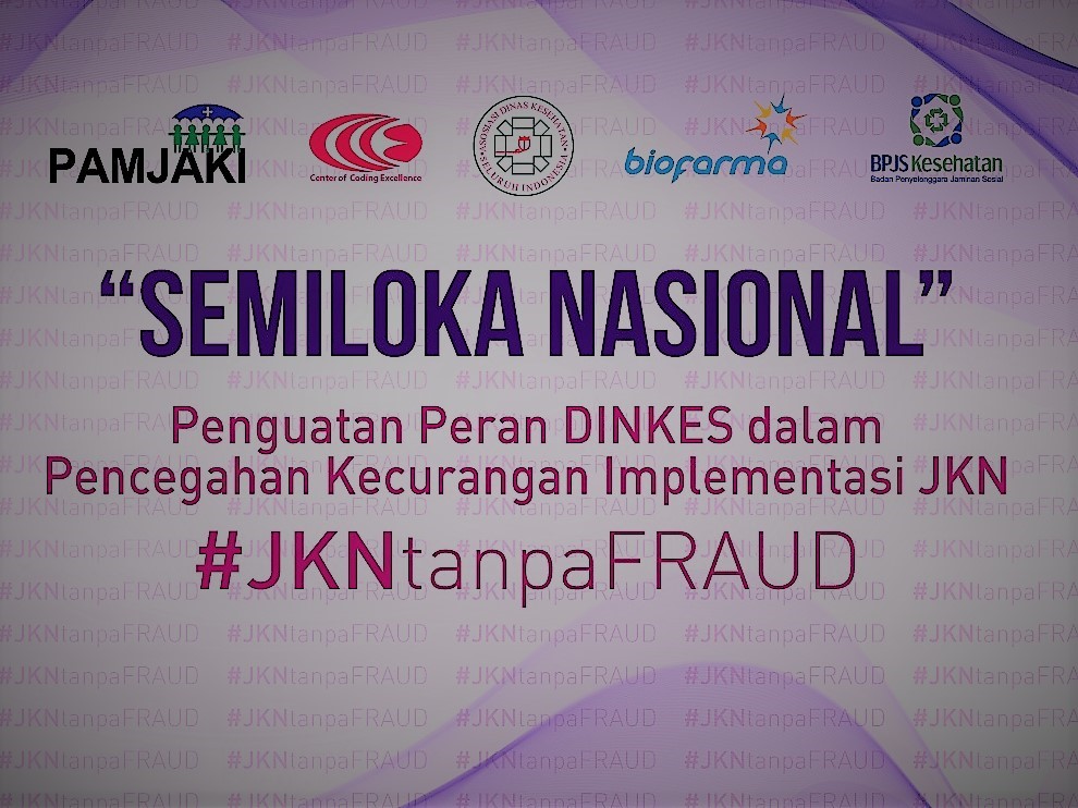 Seminar dan Lokakarya (Semiloka) Nasional; Penguatan Peran Dinkes dalam Pencegahan Kecurangan Implementasi JKN tanggal 14-15 Maret 2018 di Hotel Aryaduta, Jakarta. Acara di dihadiri oleh Menteri Keuangan RI (Sri Mulyani Indrawati, PhD), Dirut BPJS (Prof Fachmi Idris), Dirjen Bangda (Ir. Diah Indrajati, MSc) serta berbagai pembicara penting lainnya.